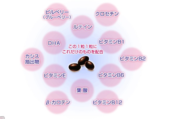 さらにクロセチンだけではなく視力に効くための成分12種類を